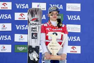 Malena ZAMFIROVA, BUL, bib number 9, Podium Photo, Women's Parallel Giant Slalom at Visa FIS Snowboard Alpine World Cup 2025-26 in Krynica, Poland, 2026-03-01, Photo Credit: action press / Miha Matavz