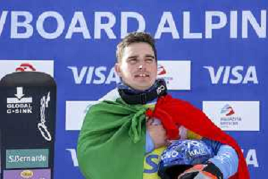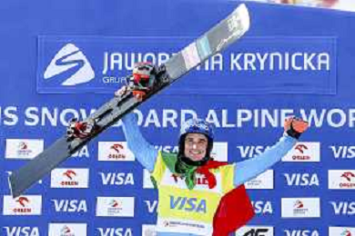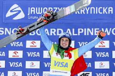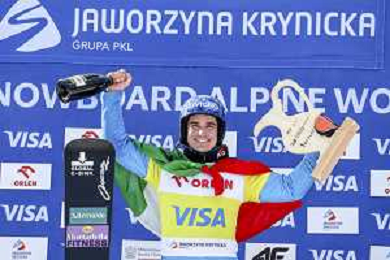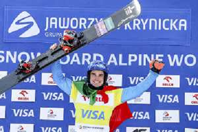 Maurizio BORMOLINI, ITA, bib number 2, Winner Photo, Men's Parallel Giant Slalom at Visa FIS Snowboard Alpine World Cup 2025-26 in Krynica, Poland, 2026-03-01, Photo Credit: action press / Miha Matavz