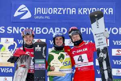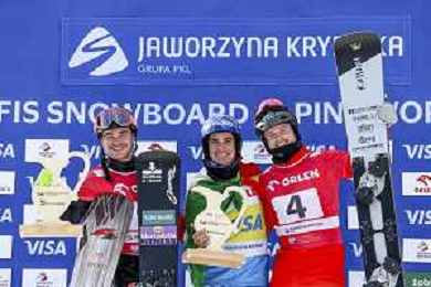 Stefan BAUMEISTER, GER, bib number 9, Podium Photo, Men's Parallel Giant Slalom at Visa FIS Snowboard Alpine World Cup 2025-26 in Krynica, Poland, 2026-03-01, Photo Credit: action press / Miha Matavz