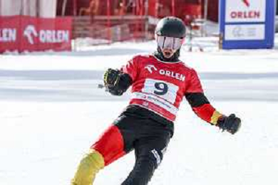 Stefan BAUMEISTER, GER, bib number 9, Action Photo, Men's Parallel Giant Slalom at Visa FIS Snowboard Alpine World Cup 2025-26 in Krynica, Poland, 2026-03-01, Photo Credit: action press / Miha Matavz