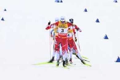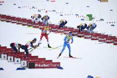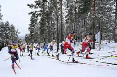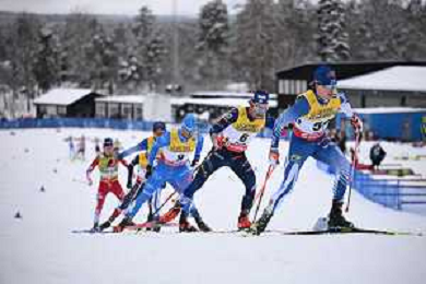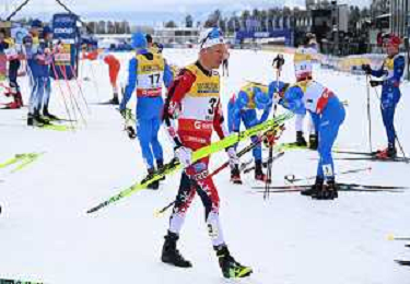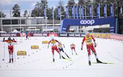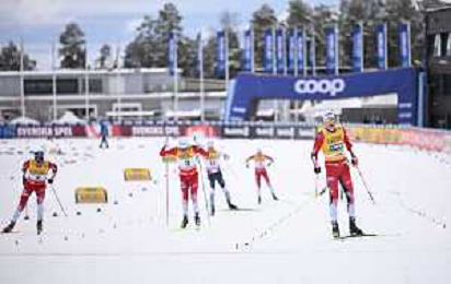 Filip SKARI, NOR, bib number 38, Petteri KOIVISTO, FIN, bib number 39, Beda KLEE, SUI, bib number 30, Alvar Johannes ALEV, EST, bib number 31, action photo, Men's 20km Skiathlon Classic/Free at Coop FIS Cross-Country World Cup 2025-26 in Falun, Sweden, 2026-03-01, Photo Credit: action press / Jonathan Nackstrand/ KarmaPress - AGENZIA ALDO LIVERANI SAS ITALY ONLY EDITORIAL USE ONLY