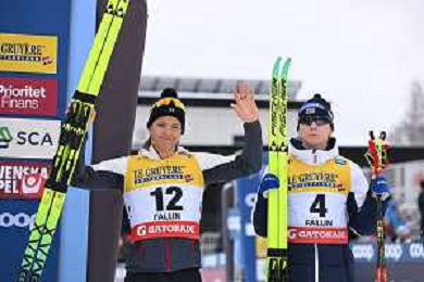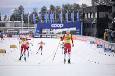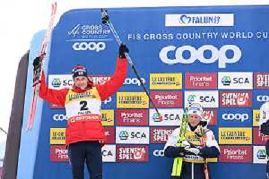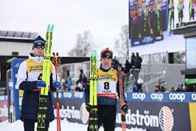 Andreas Fjorden REE, NOR, bib number 4, Arsi RUUSKANEN, FIN, bib number 8, winner photo, Men's 20km Skiathlon Classic/Free at Coop FIS Cross-Country World Cup 2025-26 in Falun, Sweden, 2026-03-01, Photo Credit: action press / Jonathan Nackstrand/ KarmaPress - AGENZIA ALDO LIVERANI SAS ITALY ONLY EDITORIAL USE ONLY