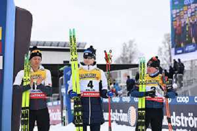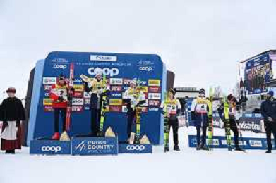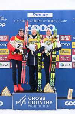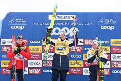 Harald Oestberg AMUNDSEN, NOR, podium photo, Men's 20km Skiathlon Classic/Free at Coop FIS Cross-Country World Cup 2025-26 in Falun, Sweden, 2026-03-01, Photo Credit: action press / Jonathan Nackstrand/ KarmaPress - AGENZIA ALDO LIVERANI SAS ITALY ONLY EDITORIAL USE ONLY