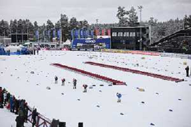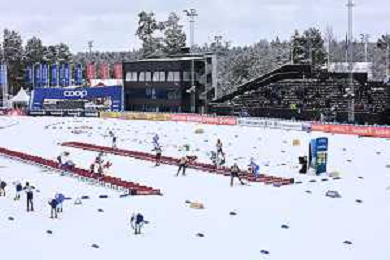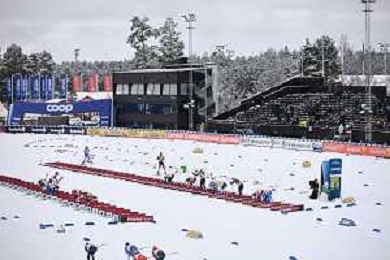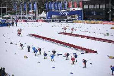 Transition area, event photo, Men's 20km Skiathlon Classic/Free at Coop FIS Cross-Country World Cup 2025-26 in Falun, Sweden, 2026-03-01, Photo Credit: action press / Jonathan Nackstrand/ KarmaPress - AGENZIA ALDO LIVERANI SAS ITALY ONLY EDITORIAL USE ONLY