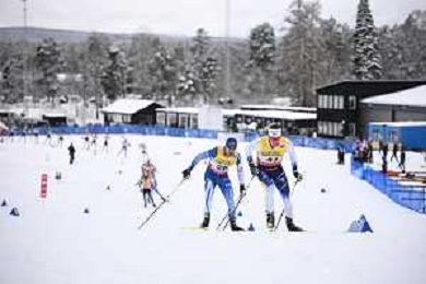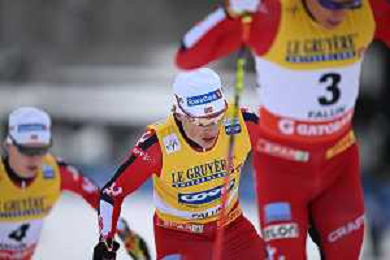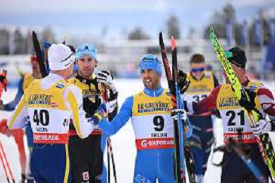 Federico PELLEGRINO, ITA, bib number 9, Hugo LAPALUS, FRA, bib number 6, Alexander STAHLBERG, FIN, bib number 59, action photo, Men's 20km Skiathlon Classic/Free at Coop FIS Cross-Country World Cup 2025-26 in Falun, Sweden, 2026-03-01, Photo Credit: action press / Jonathan Nackstrand/ KarmaPress - AGENZIA ALDO LIVERANI SAS ITALY ONLY EDITORIAL USE ONLY