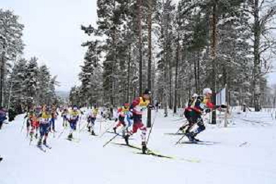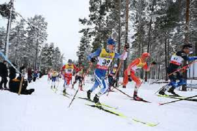 Markus VUORELA, FIN, bib number 34, Jonas ERIKSSON, SWE, bib number 40, Alexander STAHLBERG, FIN, bib number 59, action photo, Men's 20km Skiathlon Classic/Free at Coop FIS Cross-Country World Cup 2025-26 in Falun, Sweden, 2026-03-01, Photo Credit: action press / Jonathan Nackstrand/ KarmaPress - AGENZIA ALDO LIVERANI SAS ITALY ONLY EDITORIAL USE ONLY