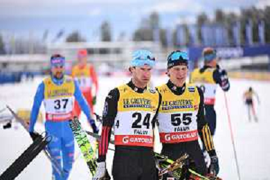 Florian NOTZ, GER, bib number 24, Jakob WALTHER, GER, bib number 55, action photo, Men's 20km Skiathlon Classic/Free at Coop FIS Cross-Country World Cup 2025-26 in Falun, Sweden, 2026-03-01, Photo Credit: action press / Jonathan Nackstrand/ KarmaPress - AGENZIA ALDO LIVERANI SAS ITALY ONLY EDITORIAL USE ONLY