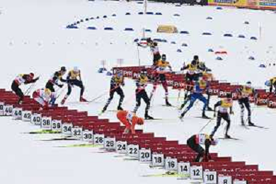 Athletes on the slope, event photo, Men's 20km Skiathlon Classic/Free at Coop FIS Cross-Country World Cup 2025-26 in Falun, Sweden, 2026-03-01, Photo Credit: action press / Jonathan Nackstrand/ KarmaPress - AGENZIA ALDO LIVERANI SAS ITALY ONLY EDITORIAL USE ONLY