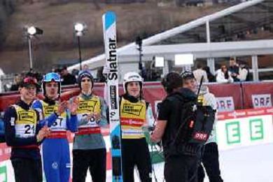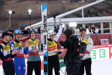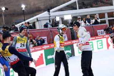Domen PREVC, SLO, Bib Number 55, Rok OBLAK, SLO, Bib Number 21, Timi ZAJC, SLO, Bib Number 37, Zak MOGEL, SLO, Bib Number 26, Action Photo, Men's Flying Hill HS235 at Viessmann FIS Ski Jumping World Cup 2025-26 in Kulm, Austria, 2026-03-01, Photo Credit: action press / Julia Piatkowska ag karmapress-ag aldo liverani sas-only italy