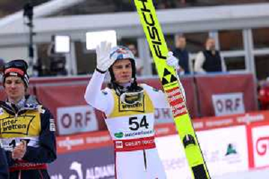 Felix HOFFMANN, GER, bib number 50, training, action photo, Men's Flying Hill HS235 Qualification at Viessmann FIS Ski Jumping World Cup 2025-26 in Kulm, Austria, 2026-02-27, Photo Credit: action press / Julia Piatkowska ag karmapress-ag aldo liverani sas-only italy