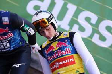 Anze LANISEK, SLO, bib number 53, training, action photo, Men's Flying Hill HS235 Qualification at Viessmann FIS Ski Jumping World Cup 2025-26 in Kulm, Austria, 2026-02-27, Photo Credit: action press / Julia Piatkowska ag karmapress-ag aldo liverani sas-only italy