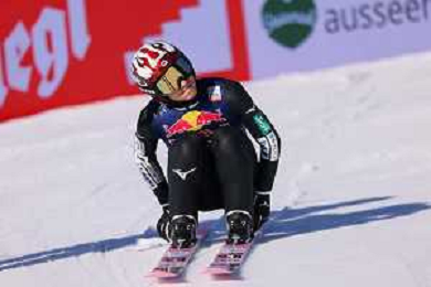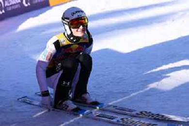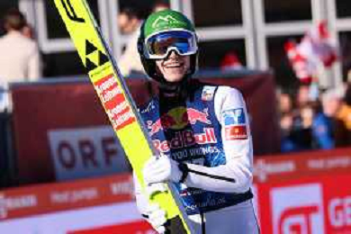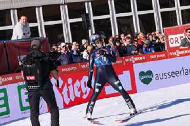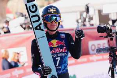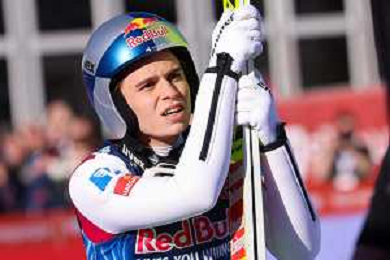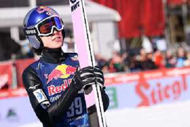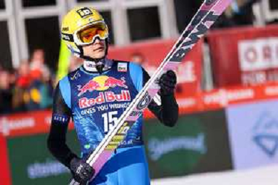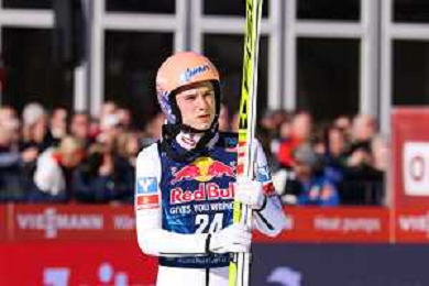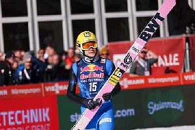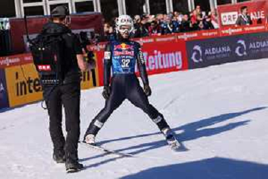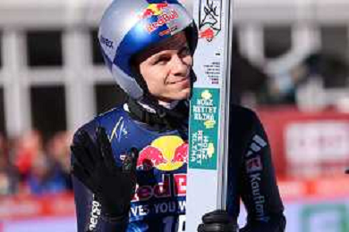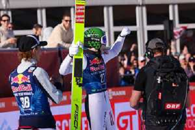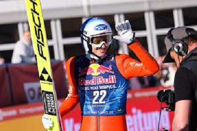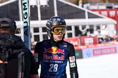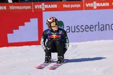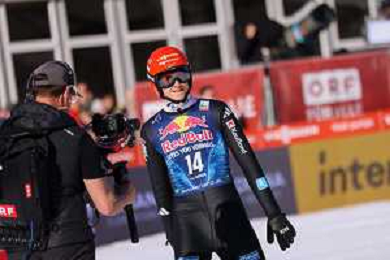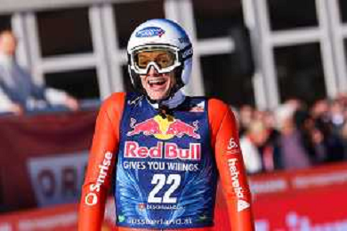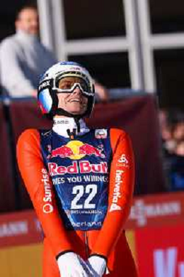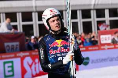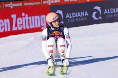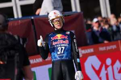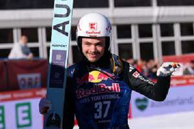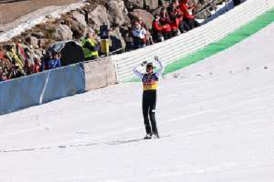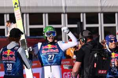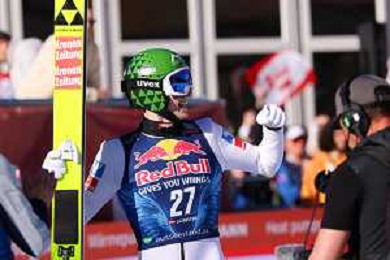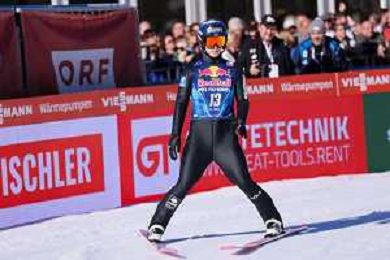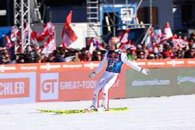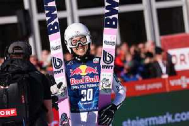 Jonas SCHUSTER, AUT, bib number 27, winner photo, Men's Flying Hill HS235 at Viessmann FIS Ski Jumping World Cup 2025-26 in Kulm, Austria, 2026-02-28, Photo Credit: action press / Julia Piatkowska ag karmapress-ag aldo liverani sas-only italy