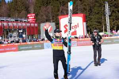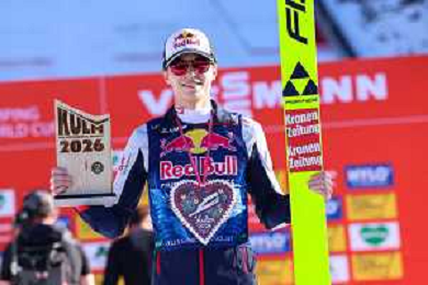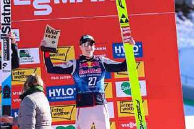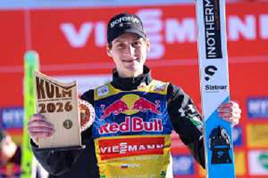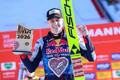 Domen PREVC, SLO, bib number 40, winner photo, Men's Flying Hill HS235 at Viessmann FIS Ski Jumping World Cup 2025-26 in Kulm, Austria, 2026-02-28, Photo Credit: action press / Julia Piatkowska ag karmapress-ag aldo liverani sas-only italy