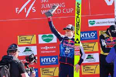Stephan EMBACHER, AUT, bib number 35, podium photo, Men's Flying Hill HS235 at Viessmann FIS Ski Jumping World Cup 2025-26 in Kulm, Austria, 2026-02-28, Photo Credit: action press / Julia Piatkowska ag karmapress-ag aldo liverani sas-only italy