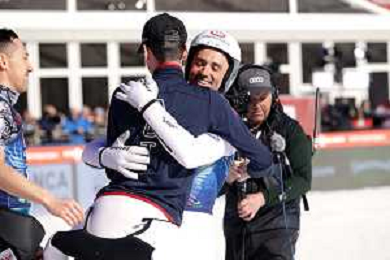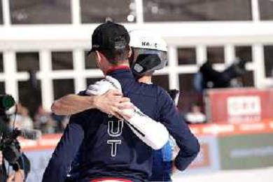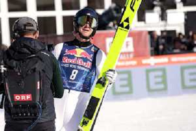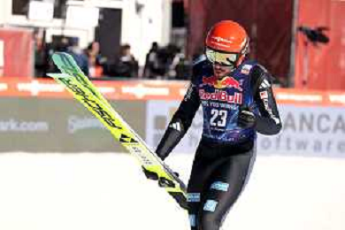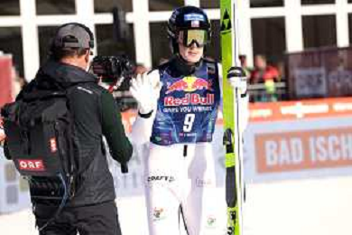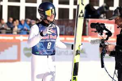 Niklas MALACINSKI, USA, Bib Number 8, Run 1, Action Photo, Men's Individual Compact Flying Hill HS235/7,5 Km at Viessmann FIS Nordic Combined World Cup 2025-26 in Kulm, Austria, 2026-02-27, Photo Credit: action press / NocoGirls ag karmapress-ag aldo liverani sas-only italy