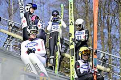 Annika SIEFF, ITA, bib number 31, Silje OPSETH, NOR, bib number 32, Training, Action Photo, Women's Normal Hill HS90 Qualification at Viessmann FIS Ski Jumping World Cup 2025-26 Hinzenbach, Austria, 2026-02-28, Photo Credit: action press / Dominik Berchtold ag karmapress-ag aldo liverani sas-only italy