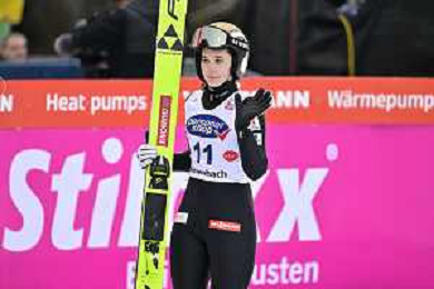 Katharina SCHMID, GER, bib number 40, Action Photo , Women's Normal Hill HS90 at Viessmann FIS Ski Jumping World Cup 2025-26 Hinzenbach, Austria, 2026-03-01, Photo Credit: action press / Dominik Berchtold/ KarmaPress - AGENZIA ALDO LIVERANI SAS ITALY ONLY EDITORIAL USE ONLY