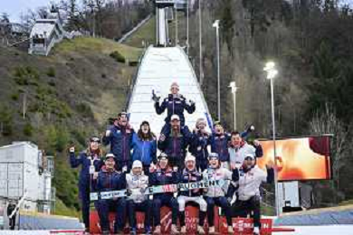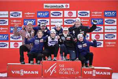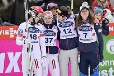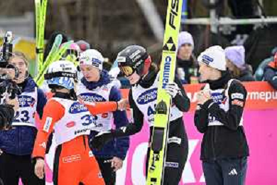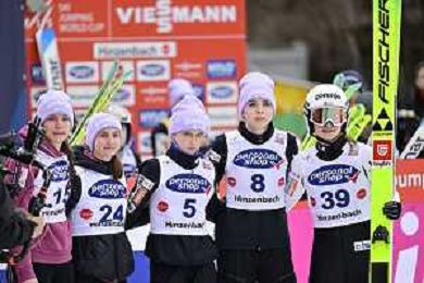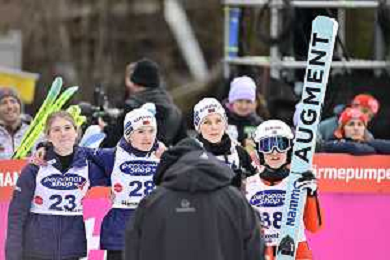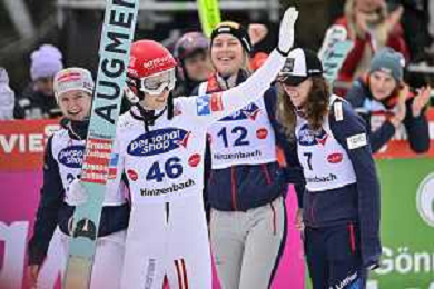 Julia MUEHLBACHER, AUT, bib number 37, Lisa EDER, AUT, bib number 46, Hannah WIEGELE, AUT, bib number 12, Sophie KOTHBAUER, AUT, bib number 7, Action Photo , Women's Normal Hill HS90 at Viessmann FIS Ski Jumping World Cup 2025-26 Hinzenbach, Austria, 2026-03-01, Photo Credit: action press / Dominik Berchtold/ KarmaPress - AGENZIA ALDO LIVERANI SAS ITALY ONLY EDITORIAL USE ONLY