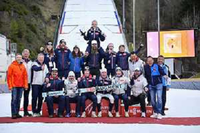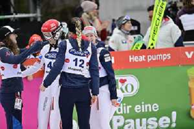 Gyda Westvold HANSEN, NOR, bib number 28, Anna Odine STROEM, NOR, bib number 45, Silje OPSETH, NOR, bib number 32, Action Photo , Women's Normal Hill HS90 at Viessmann FIS Ski Jumping World Cup 2025-26 Hinzenbach, Austria, 2026-03-01, Photo Credit: action press / Dominik Berchtold/ KarmaPress - AGENZIA ALDO LIVERANI SAS ITALY ONLY EDITORIAL USE ONLY