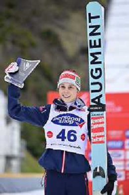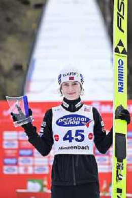 Anna Odine STROEM, NOR, bib number 45, Podium Photo, Women's Normal Hill HS90 at Viessmann FIS Ski Jumping World Cup 2025-26 Hinzenbach, Austria, 2026-03-01, Photo Credit: action press / Dominik Berchtold/ KarmaPress - AGENZIA ALDO LIVERANI SAS ITALY ONLY EDITORIAL USE ONLY