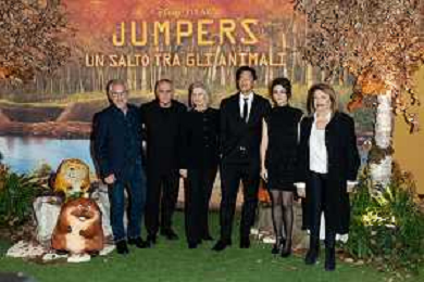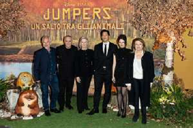 Roma - 03 Marzo 2026 Red Carpet della Premiere Italiana del nuovo film Disney ‘JUMPERS’ Nella foto: Francesco Prando, Giorgio Panariello, Nicole Paradis Grindle, Daniel Chong, Tecla Insolia, Rossella Izzo Foto Credit: Andrea Bracaglia- AGENZIA ALDO LIVERANI SAS