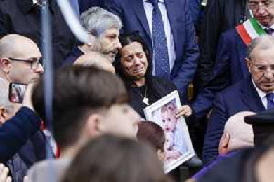 Funerali di Domenico Caliendo - Nola 04–03-2026 nella foto l’uscita della bara con la mamma Patrizia Mercolino Foto Antonio Balasco - ag Aldo liverani