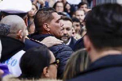 Funerali di Domenico Caliendo - Nola 04–03-2026 nella foto l’uscita della bara con il Padre Antonio Caliendo Foto Antonio Balasco - ag Aldo liverani