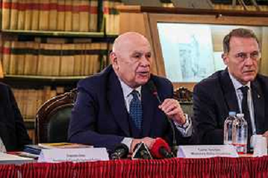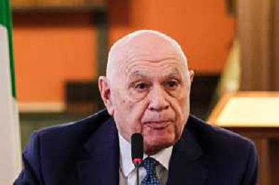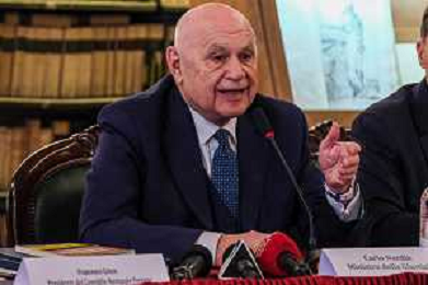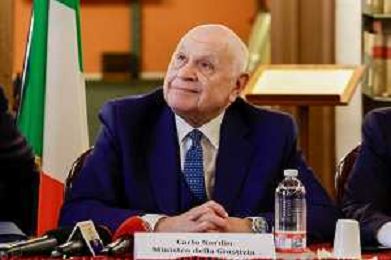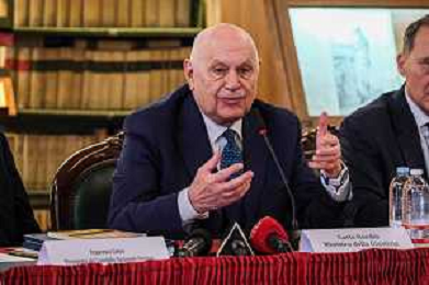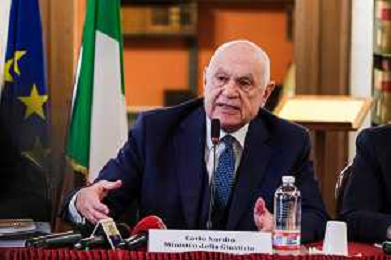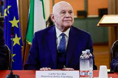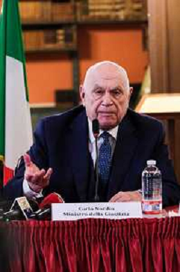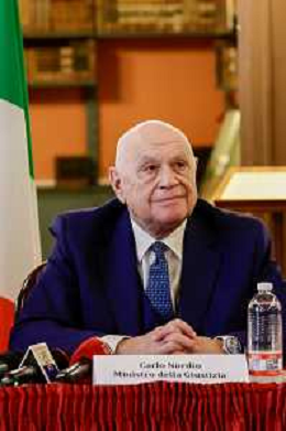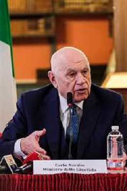 Il ministro della Giustizia italiano Carlo Nordio durante la presentazione del suo libro “Una nuova giustizia”. - Napoli 05-03-2026
