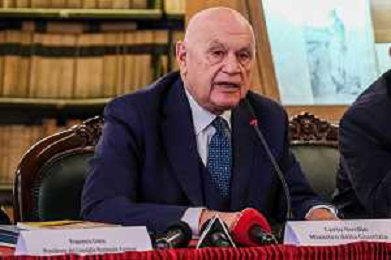 Il ministro della Giustizia italiano Carlo Nordio durante la presentazione del suo libro ‘Una nuova giustizia’. - Napoli 05-03-2026 nella foto Il ministro della Giustizia italiano Carlo Nordio Foto Antonio Balasco - ag Aldo liverani