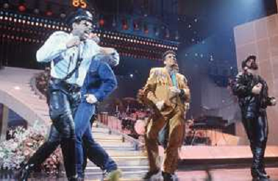 DIAP-RETROSPETTIVA GRUPPO MUSICALE AMERICANO DEI VILLAGE PEOPLE NELLA FOTO IL GRUPPO MUSICALE DEI VILLAGE PEOPLE A SANREMO NELL'ANNO 1985 AG ALDO LIVERANI SAS