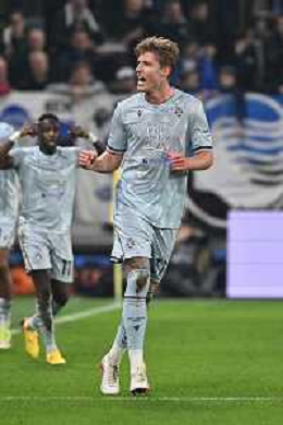 TVRG Atalanta vs Udinese nella foto Thomas Thiesson Kristensen (Udinese) esultanza dopo il gol dell'1 a 0 Bergamo 07-03-2026 New Balance Arena - Stadio di Bergamo Atalanta vs Udinese Campionato Serie A Enilive - 28a giornata foto Roberto Garavaglia/Agenzia Aldo Liverani sas