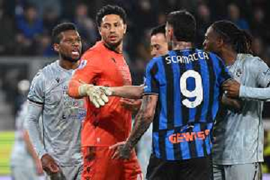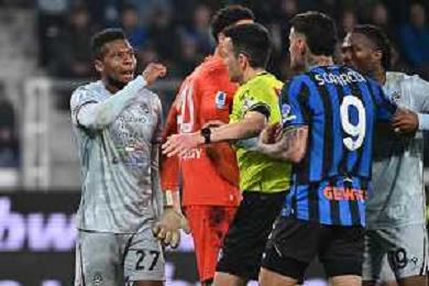 TVRG Atalanta vs Udinese nella foto tensione tra Christian Kabasele (Udinese) e Gianluca Scamacca (Atalanta) Bergamo 07-03-2026 New Balance Arena - Stadio di Bergamo Atalanta vs Udinese Campionato Serie A Enilive - 28a giornata foto Roberto Garavaglia/Agenzia Aldo Liverani sas
