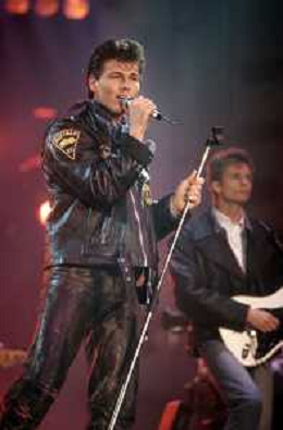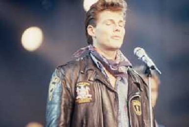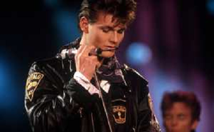 DIAP-RETROSPETTIVA GRUPPO MUSICALE NORVEGESE A-HA NELLA FOTO IL GRUPPO MUSICALE A-HA -MORTEN HARKET AL FESTIVAL DELLA CANZONE ITALIANA A SANREMO NELL'ANNO 1988 AG ALDO LIVERANI SAS
