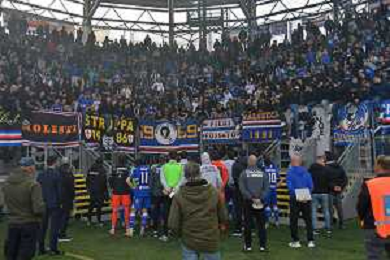 Frosinone vs Sampdoria Campionato Serie BKT - 29 Giornata Stadio Benito Stirpe - Frosinone 08-03-2026 nella foto Sampdoria delusa sotto la curva Foto di Federico Gaetano - ag.Aldo Liverani- AGENZIA ALDO LIVERANI SAS