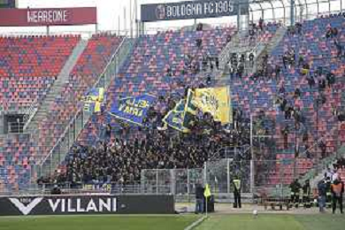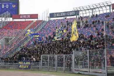 Tifosi - Hellas Verona fans show their support during Bologna FC vs Hellas Verona, 28° Serie A Enilive 2025-26 game at Renato Dall'Ara stadium in Bologna (BO), Italy, on March 08, 2026. (Photo by Davide Casentini)- AGENZIA ALDO LIVERANI SAS