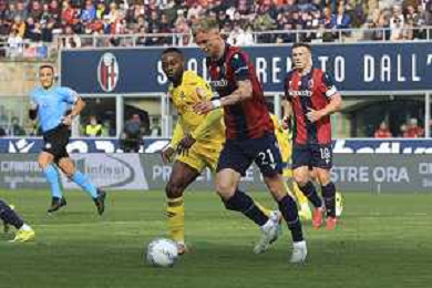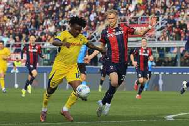 Nadir Zortea of Bologna FC play the ball during Bologna FC vs Hellas Verona, 28° Serie A Enilive 2025-26 game at Renato Dall'Ara stadium in Bologna (BO), Italy, on March 08, 2026. (Photo by Davide Casentini)- AGENZIA ALDO LIVERANI SAS