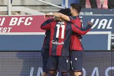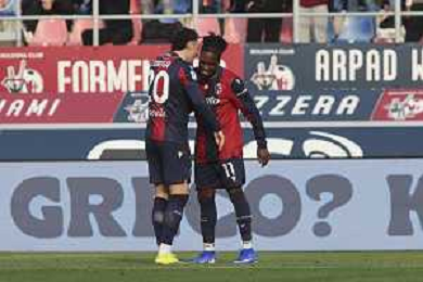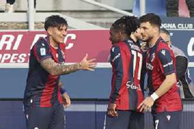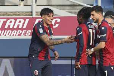 Jonathan Rowe of Bologna FC celebrates with team mate during Bologna FC vs Hellas Verona, 28° Serie A Enilive 2025-26 game at Renato Dall'Ara stadium in Bologna (BO), Italy, on March 08, 2026. (Photo by Davide Casentini)- AGENZIA ALDO LIVERANI SAS