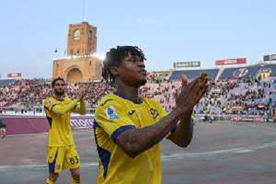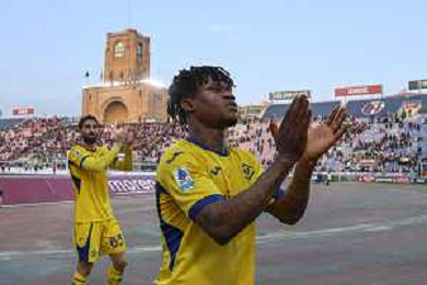 Gift Orban of Hellas Verona FC applaud the fans following the final whistle at the end of Bologna FC vs Hellas Verona, 28° Serie A Enilive 2025-26 game at Renato Dall'Ara stadium in Bologna (BO), Italy, on March 08, 2026. (Photo by Davide Casentini)- AGENZIA ALDO LIVERANI SAS