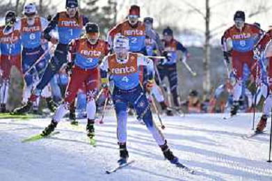 Eva INGEBRIGTSEN, NOR, bib number 3, run 1, Alison MACKIE, CAN, bib number 2, run 1, Leonie PERRY, FRA, bib number 1, run 1Anna STEWART, CAN, bib number 46, run 1, winner photo, U23 Women's 20km Mass Start Free at FIS Junior and U23 World Cross-Country Ski Championships in Lillehammer, Norway, 2026-03-05, Photo Credit: action press / David Soldati / KarmaPress - AGENZIA ALDO LIVERANI SAS ITALY ONLY EDITORIAL USE ONLY
