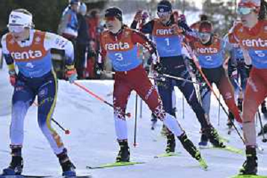 <, w9<, <w3, Alison MACKIE, CAN, bib number 2, run 1, Elin HENRIKSSON, SWE, bib number 7, run 1, Marina KAELIN, SUI, bib number 5, run 1, Evelina CRUSELL, SWE, bib number 4, run 1, Lisa ERIKSSON, SWE, bib number 6, run 1, Nadine LAURENT, ITA, bib number 13, run 1, action photo, U23 Women's 20km Mass Start Free at FIS Junior and U23 World Cross-Country Ski Championships in Lillehammer, Norway, 2026-03-05, Photo Credit: action press / Fredrik Hagen / KarmaPress - AGENZIA ALDO LIVERANI SAS ITALY ONLY EDITORIAL USE ONLY