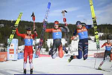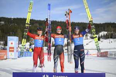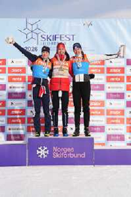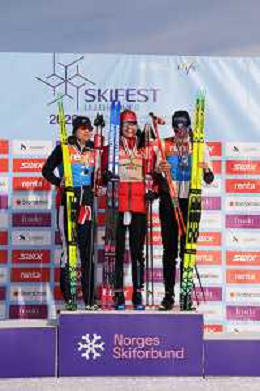 Eva INGEBRIGTSEN, NOR, bib number 3, run 1, Alison MACKIE, CAN, bib number 2, run 1, Leonie PERRY, FRA, bib number 1, run 1, winner photo, U23 Women's 20km Mass Start Free at FIS Junior and U23 World Cross-Country Ski Championships in Lillehammer, Norway, 2026-03-05, Photo Credit: action press / Fredrik Hagen / KarmaPress - AGENZIA ALDO LIVERANI SAS ITALY ONLY EDITORIAL USE ONLY