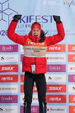 Kaho NAKAJIMA, JPN, bib number 35, run 1, winner photo, U23 Women's 20km Mass Start Free at FIS Junior and U23 World Cross-Country Ski Championships in Lillehammer, Norway, 2026-03-05, Photo Credit: action press / David Soldati / KarmaPress - AGENZIA ALDO LIVERANI SAS ITALY ONLY EDITORIAL USE ONLY