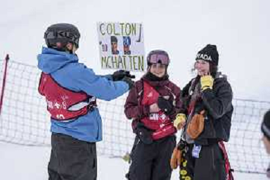 Juliette VALLERAND, CAN, bib number 8, Colton MCHATTEN, CAN, bib number 10, Action Photo, Junior Men's Snowboard Big Air at FIS Park and Pipe Junior World Championships in Calgary, Canada, 2026-03-04, Photo Credit: action press / Bart Onyszko / KarmaPress - AGENZIA ALDO LIVERANI SAS ITALY ONLY EDITORIAL USE ONLY