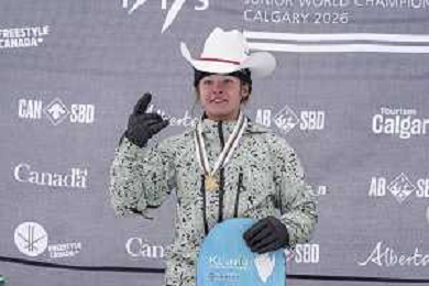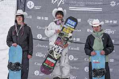 Sky REMANS, BEL, bib number 4, Podium Photo, Junior Women's Snowboard Big Air at FIS Park and Pipe Junior World Championships in Calgary, Canada, 2026-03-04, Photo Credit: action press / Bart Onyszko / KarmaPress - AGENZIA ALDO LIVERANI SAS ITALY ONLY EDITORIAL USE ONLY