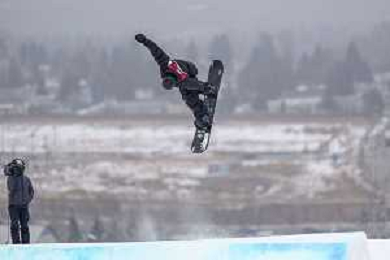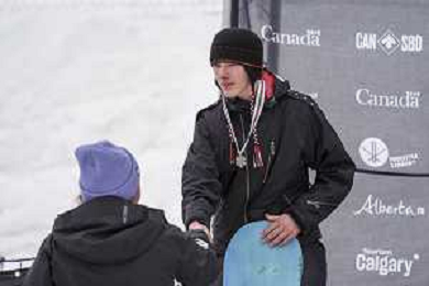 Kanon LING, CAN, bib number 18, Action Photo, Junior Men's Snowboard Big Air at FIS Park and Pipe Junior World Championships in Calgary, Canada, 2026-03-04, Photo Credit: action press / Bart Onyszko / KarmaPress - AGENZIA ALDO LIVERANI SAS ITALY ONLY EDITORIAL USE ONLY