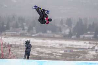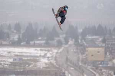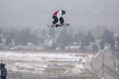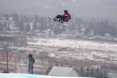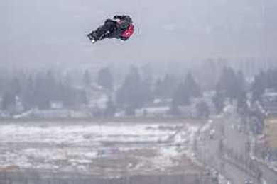 Fletcher STEVENS, NZL, bib number 12, Action Photo, Junior Men's Snowboard Big Air at FIS Park and Pipe Junior World Championships in Calgary, Canada, 2026-03-04, Photo Credit: action press / Bart Onyszko / KarmaPress - AGENZIA ALDO LIVERANI SAS ITALY ONLY EDITORIAL USE ONLY