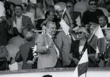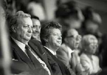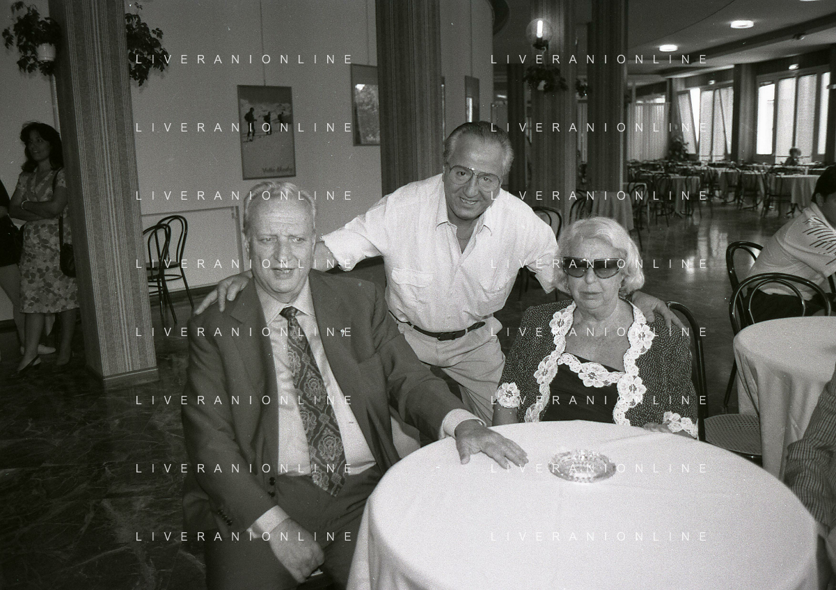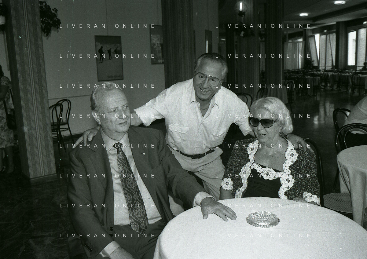 1990-1991 RETROSPETTIVA MARIO CECCHI GORI PRESIDENTE DELLA FIORENTINA CALCIO NELLA FOTO MARIO CECCHI GORI CON LA MOGLIE VALERIA E FERRUCCIO VALCAREGGI AG ALDO LIVERANI SAS
