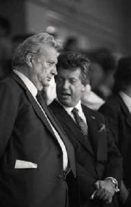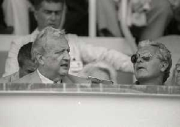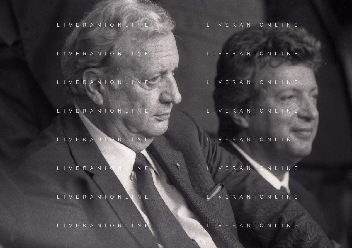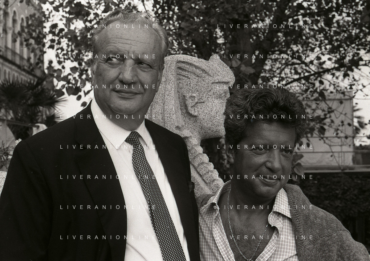 1990-1991 RETROSPETTIVA MARIO CECCHI GORI PRESIDENTE DELLA FIORENTINA CALCIO NELLA FOTO MARIO CECCHI GORI CON VITTORIO CECCHI GORI AG ALDO LIVERANI SAS