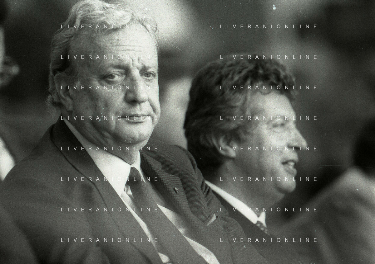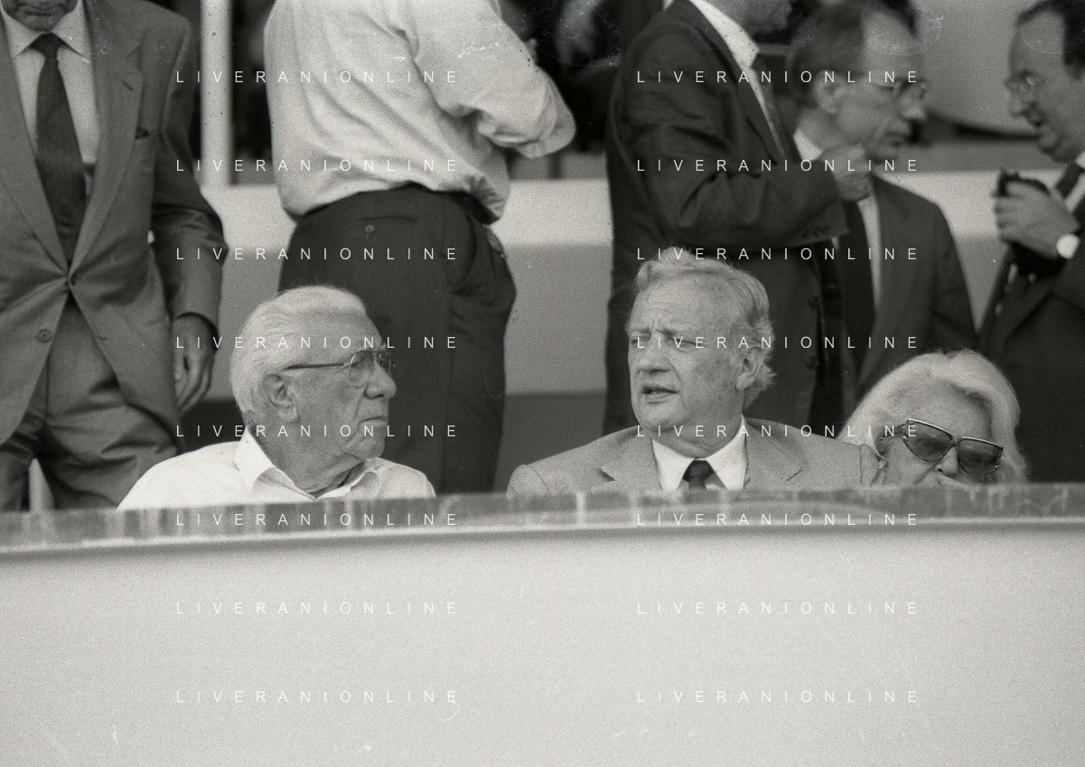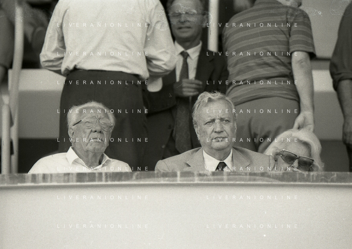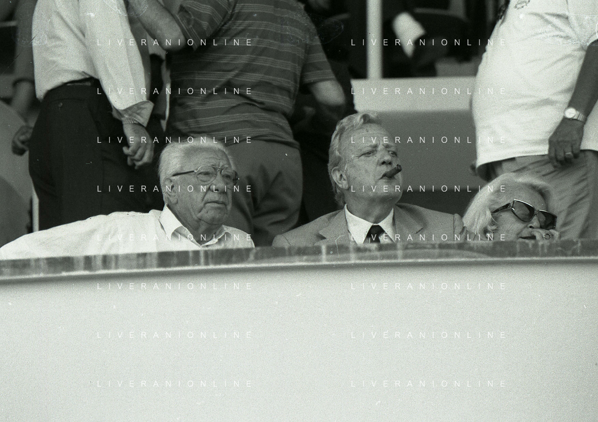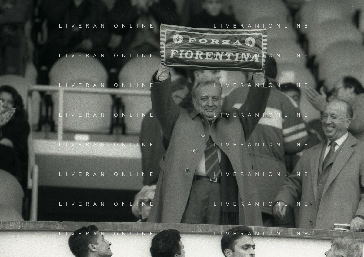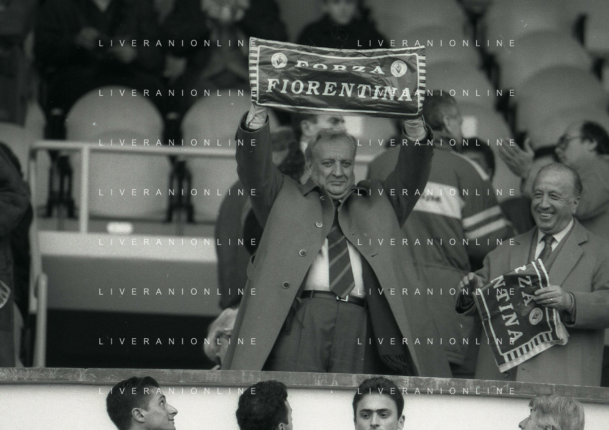 1990-1991 RETROSPETTIVA MARIO CECCHI GORI PRESIDENTE DELLA FIORENTINA CALCIO NELLA FOTO MARIO CECCHI GORICON VITTORIO CECCHI GORI AG ALDO LIVERANI SAS