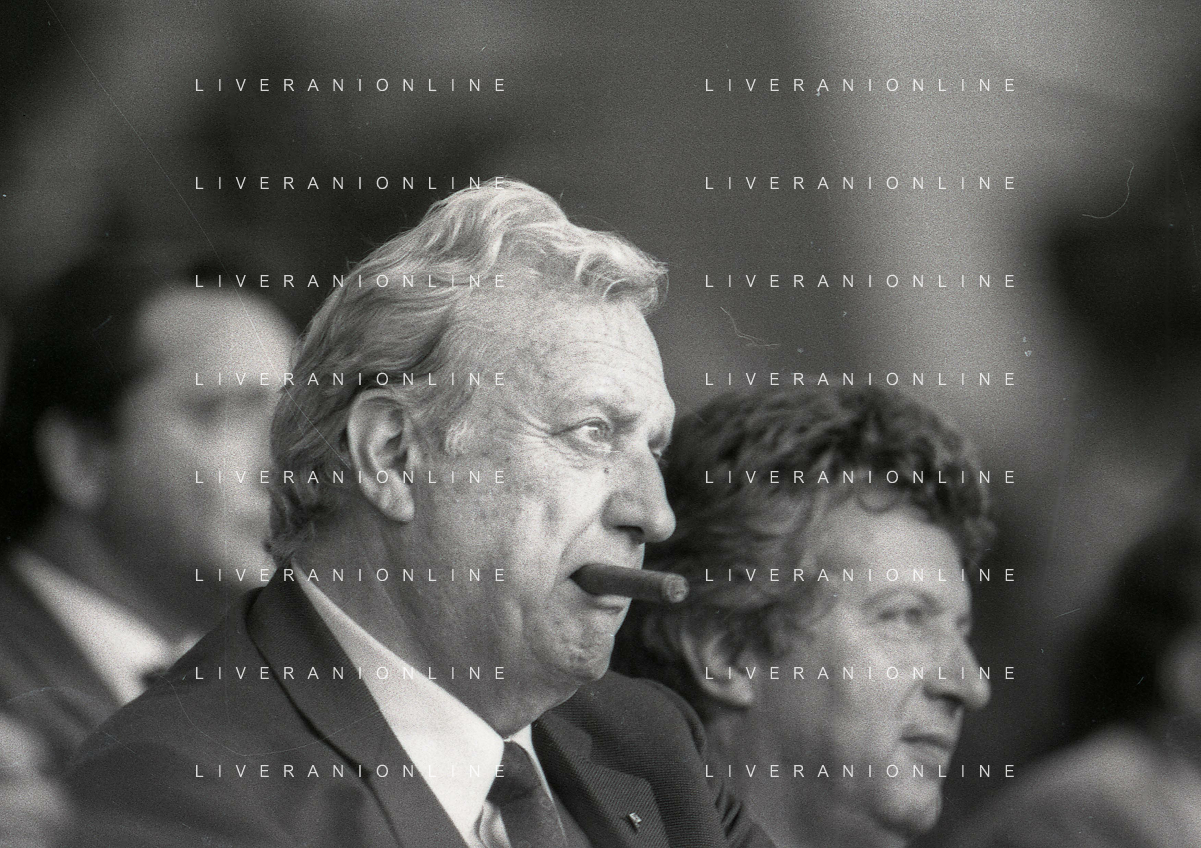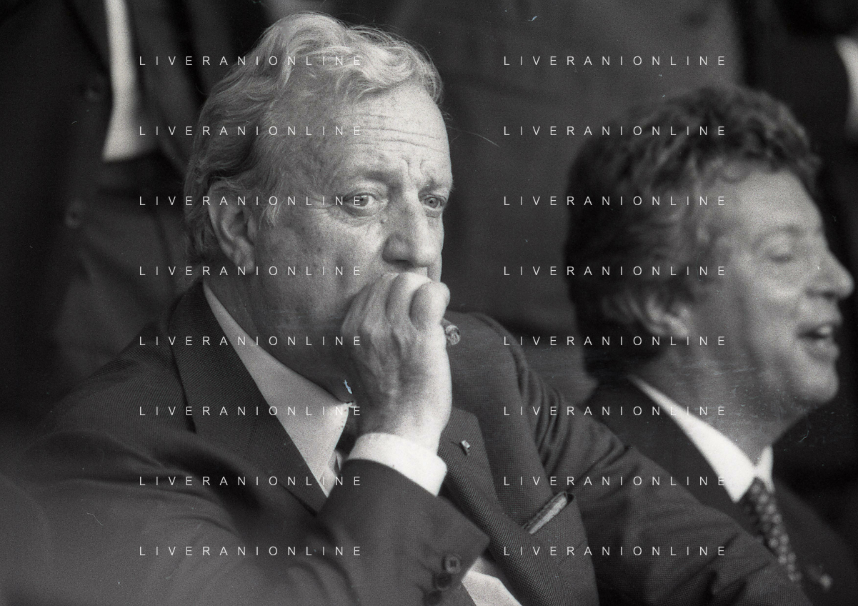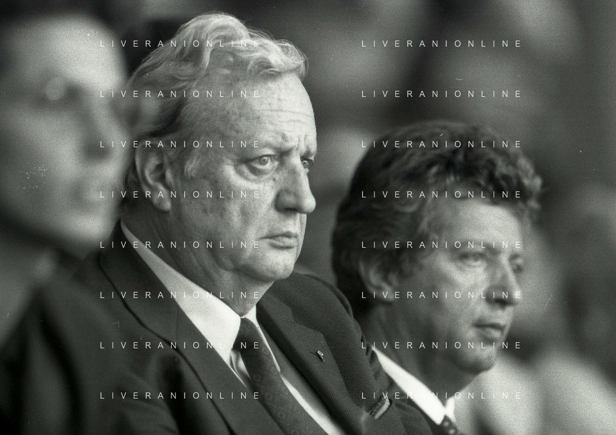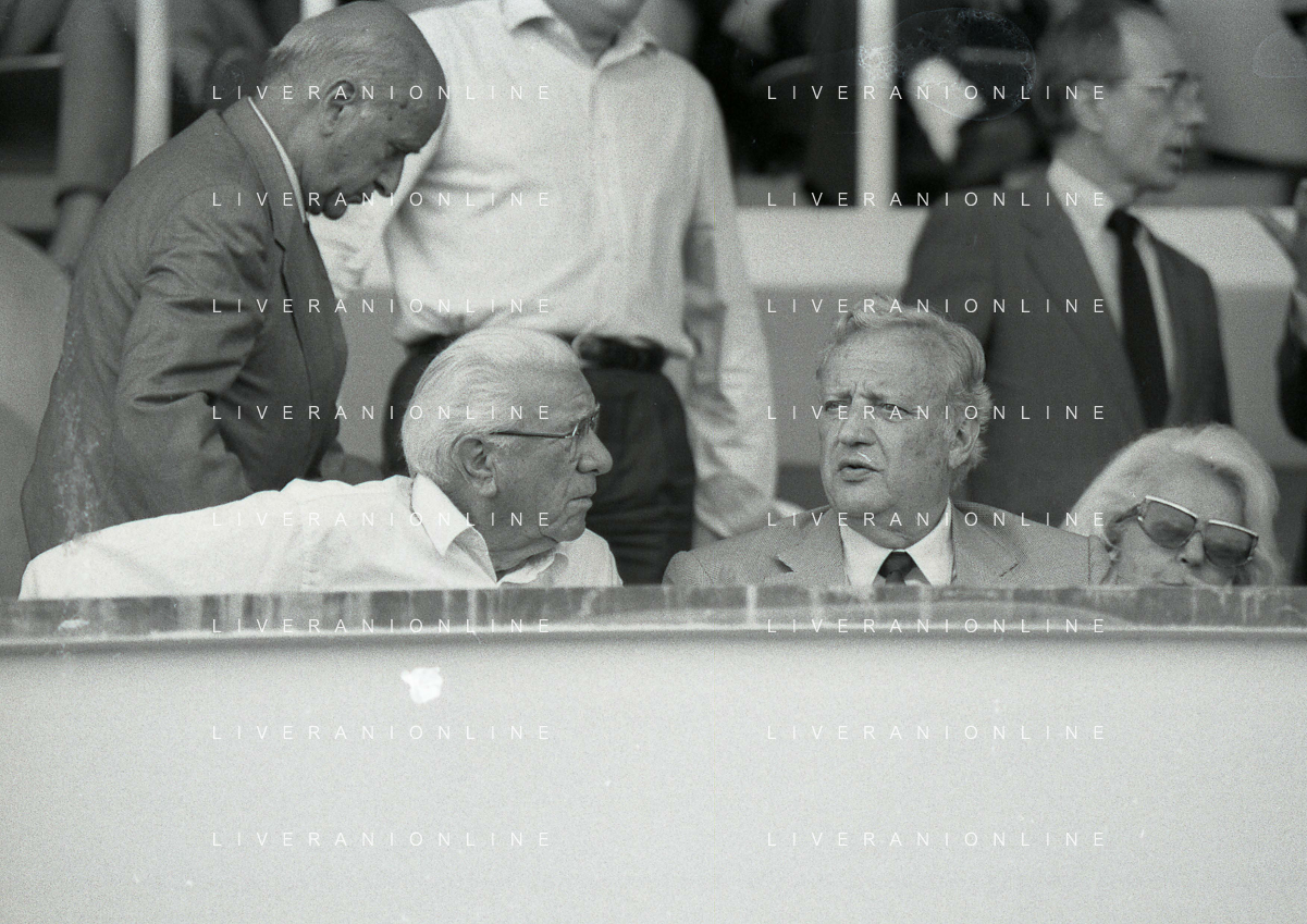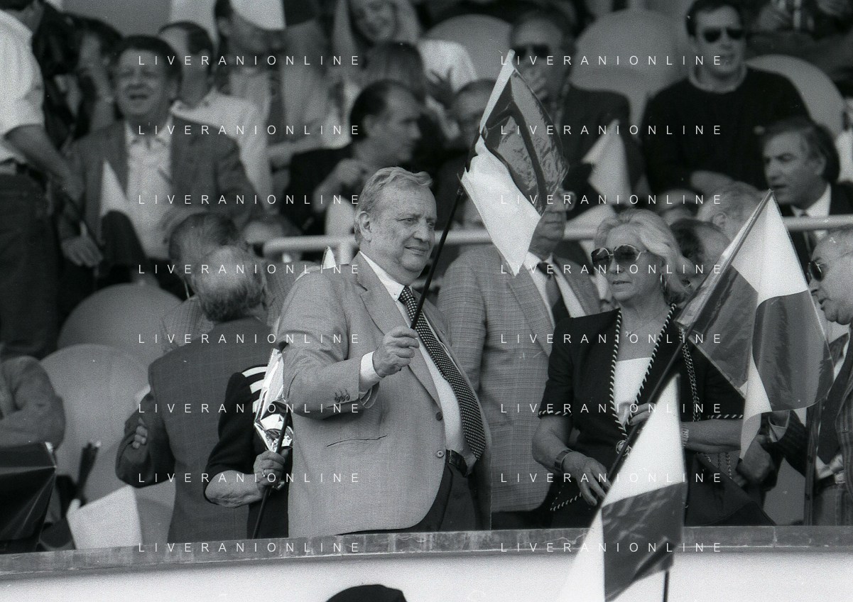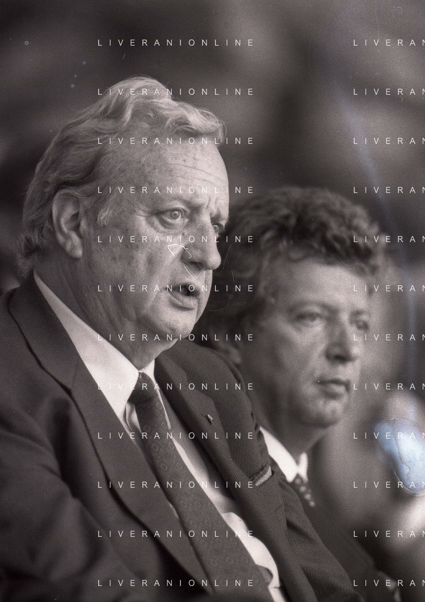 1990-1991 RETROSPETTIVA MARIO CECCHI GORI PRESIDENTE DELLA FIORENTINA CALCIO NELLA FOTO MARIO CECCHI GORICON VITTORIO CECCHI GORI AG ALDO LIVERANI SAS